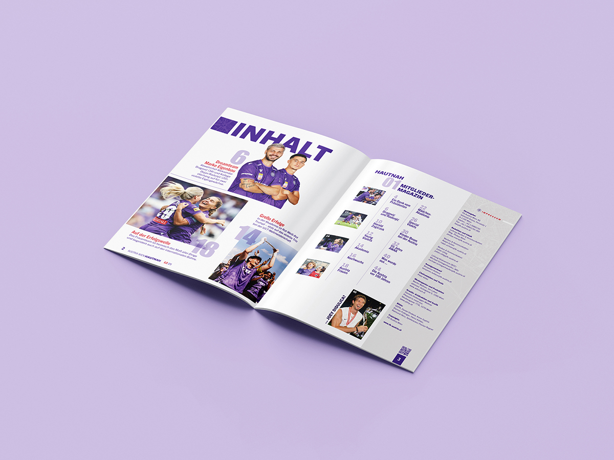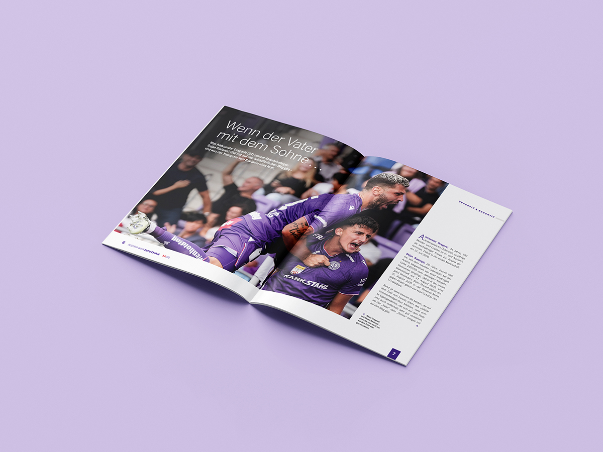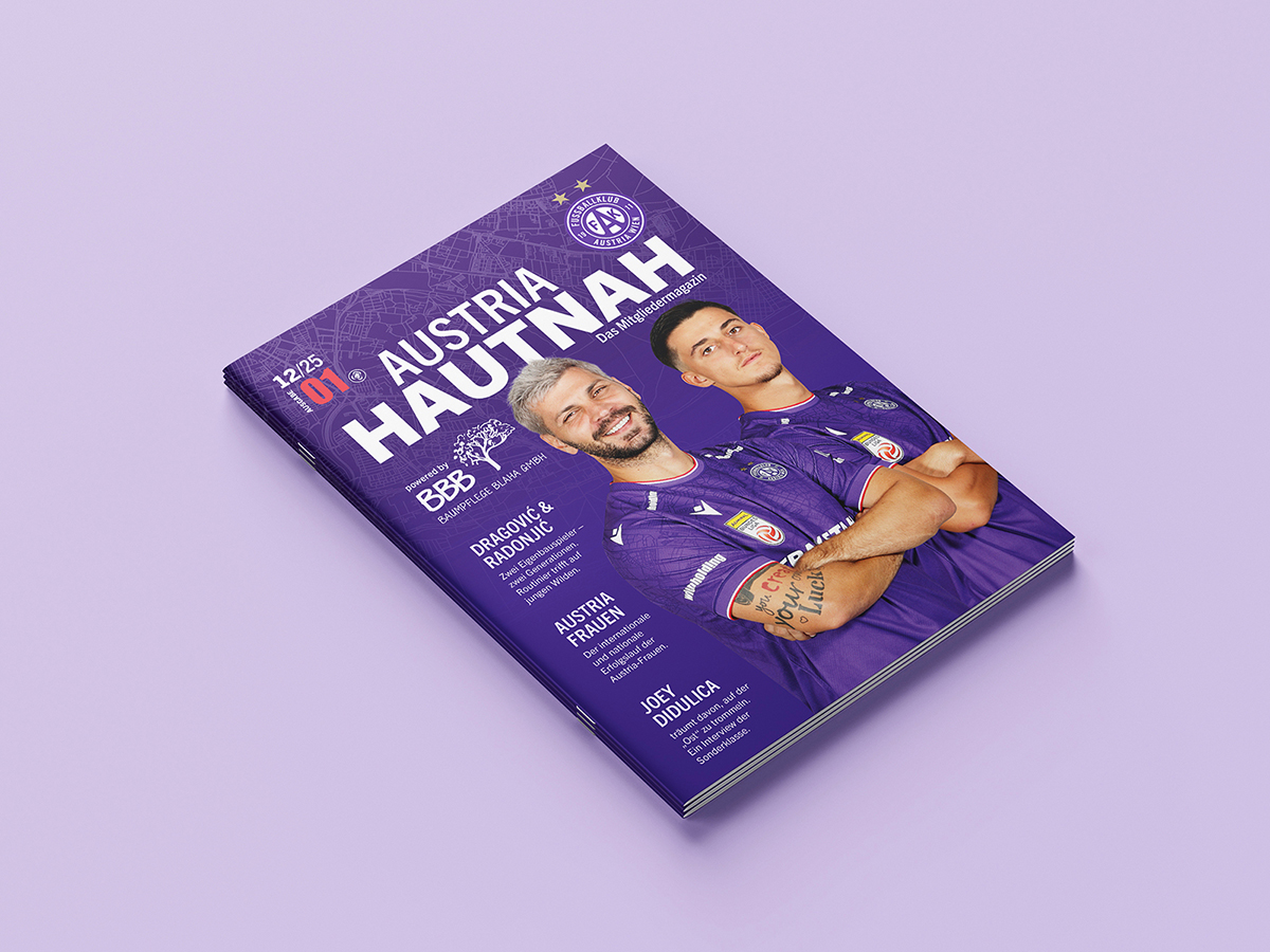 Kreativ-, Artdirektion und Grafik des neuen Mitgliedermagazines Hautnah des FK Austria Wien